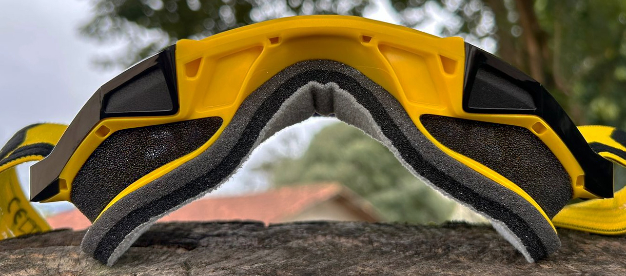 A armação com design mais fino oferece não apenas uma estética moderna, mas também um aumento significativo na visibilidade, sem comprometer a resistência ou a mobilidade. Três espumas cuidadosamente posicionadas garantem um conforto excepcional, absorvendo impactos, umidade, suor e minimizando a entrada de sujeira, para que você possa se concentrar totalmente na pilotagem.