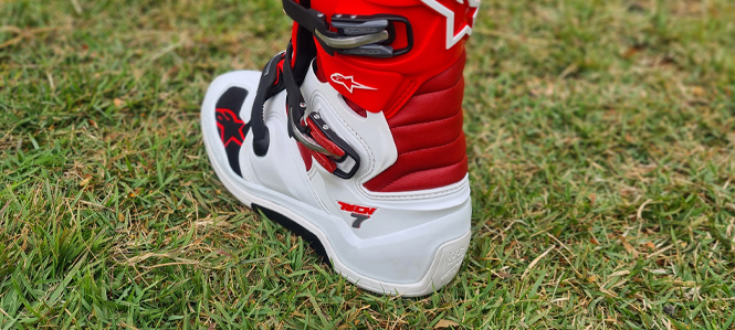 A Bota conta com sistema de proteção conta torções e hiperextensões agindo para garantir que o piloto estará seguro durante suas atividades, com a Bota Alpinestars Tech 7 a segurança é muito maior, além de permitir que os movimentos naturais sejam realizados de maneira irrestrita, assim o piloto pode realizar movimentos livres com os pés, melhorando a performance, equilíbrio e o conforto.