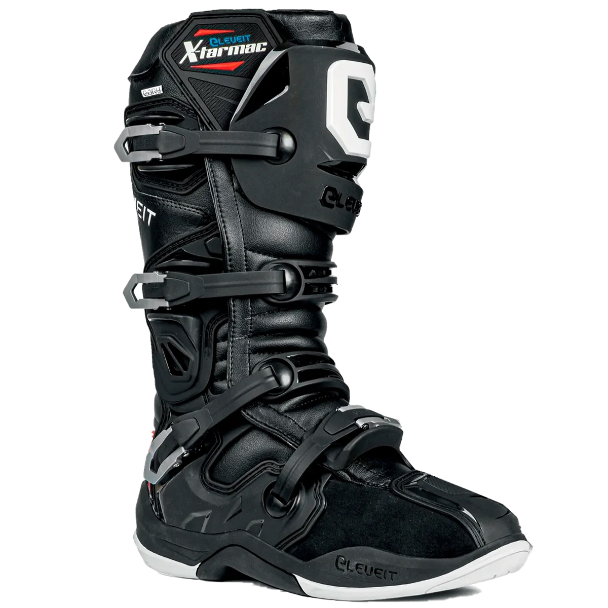 O design esportivo nas cores preto e vermelho confere à Eleveit X-Tarmac WP um visual moderno e agressivo. Os acabamentos de alta qualidade reforçam a durabilidade do produto, enquanto os reforços externos e internos garantem proteção adicional em pontos de impacto.