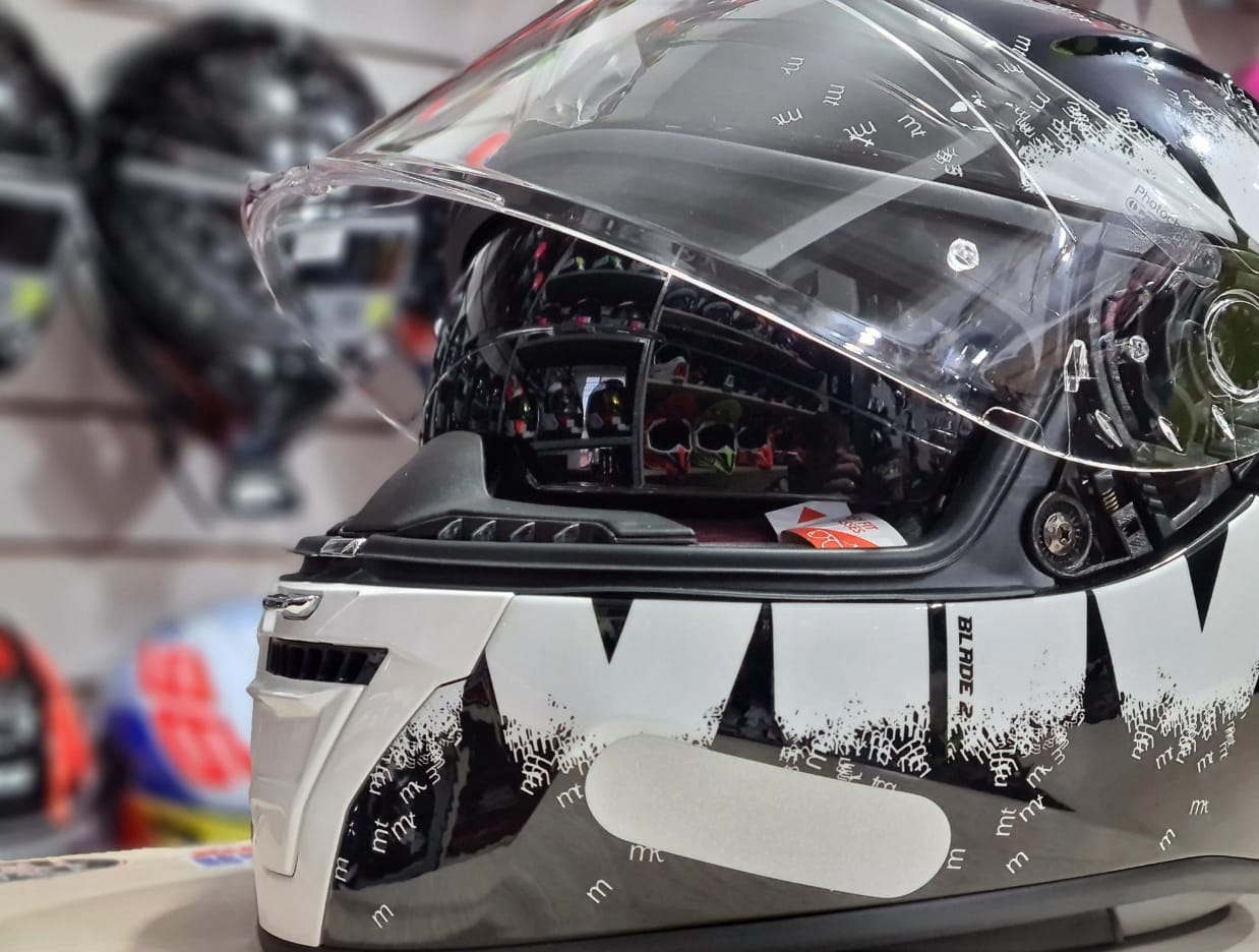 A MT Helmets trouxe agora a novidade de sua linha Blade, a linha de capacetes agora conta com um novo visual modernizado muito semelhante à linha Revenge, trouxe tecnologias refinadas e consequentemente mais segurança, inclusive o Capacete Blade 2 é um campeão nesse quesito, possui materiais de ponta desde a carcaça até seu tecido. Possui Fechamento micrométrico totalmente metálico e múltipla densidade interna de poliestireno.