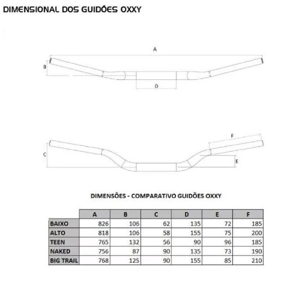 Fabricado em liga de alumínio alcoa 6061 T6 o Guidão Super Fatbar Alto Oxxy conta com tubo 31,75 mm X 5,00 mm de espessura, conificado para diâmetro 22,2 mm, curvado na medida correta e com tratamento térmico obtendo maior segurança e proteção contra rupturas ou stress por cansaço e fadiga. Seu acabamento é realizado através de eletrocoloração e anodização resistente a riscos e intempéries.