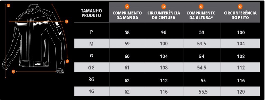 Conta com dois bolsos externos e Proteção com C.E nos cotovelos e ombros, além de um ajuste em velcro na cintura que auxilia na fixação e adaptação da jaqueta ao corpo. Possui faixas refletivas no peito e costas além de canaleta impermeável sob o zíper principal.