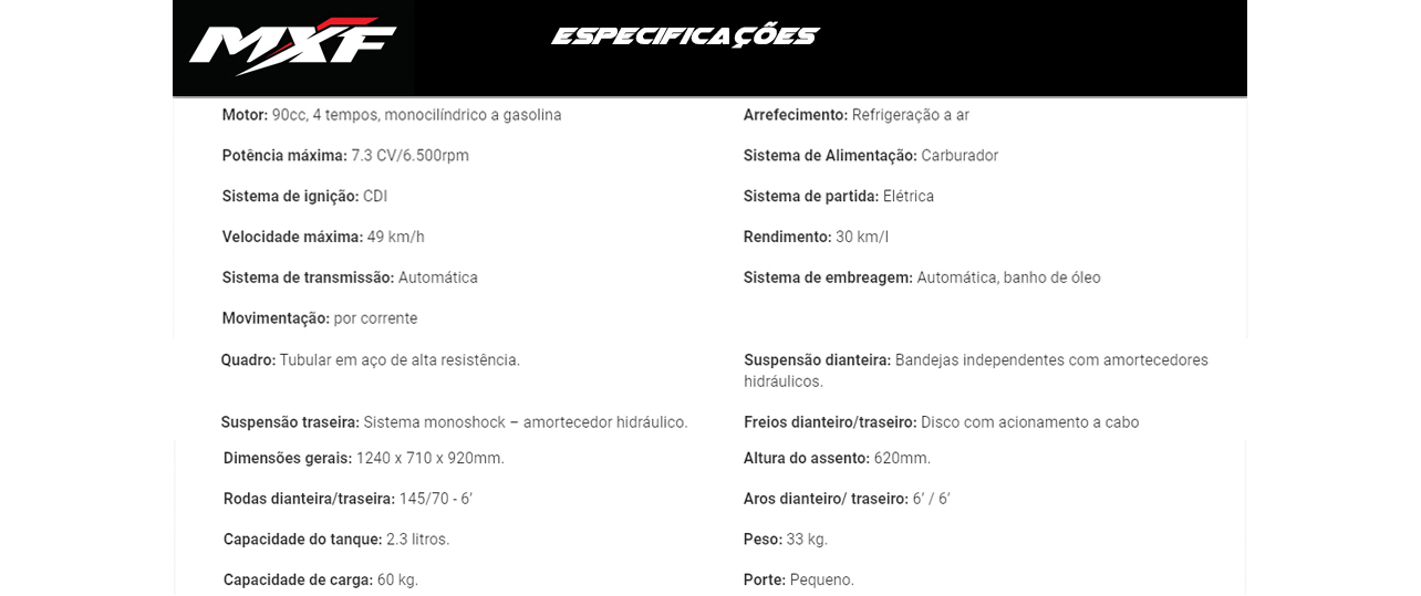 A Suspensão do Quadriciclo MXF Thor 90cc é um dos grandes diferenciais desse monstrinho, ele possui a suspensão dianteira equipada com sistema monoshock e amortecedor hidráulico com bandejas independentes, ela é preparada para encarar os mais diversos terrenos e garantir a estabilidade do quadriciclo, além de reduzir o impacto causado pelos relevos do solo e melhorando o equilíbrio da criança enquanto utiliza o equipamento.