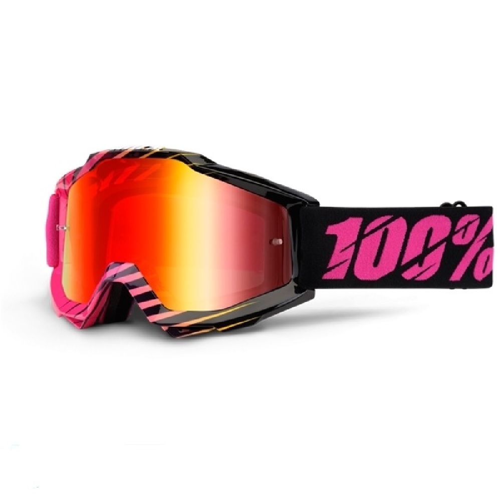 Os Óculos de trilha desenvolvidos pela 100% usam o mesmo tamanho de lente e perfil de corte, desta forma, a adaptação de u piloto que decide mudar de linha ou modelo é extremamente rápida, na com 9 pinos de encaixe para a lente, a fixação e a segurança são ainda maiores.